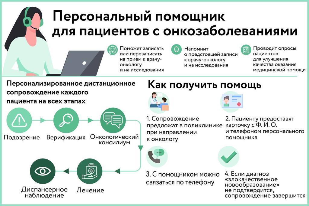 Информация о возможности персонального сопровождения предоставляется в поликлиниках при направлении к врачу-онкологу.