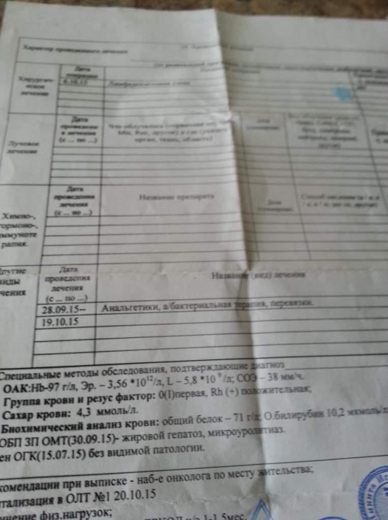 Здравствуйте. Вот наша история: в 2010 году у моей мамы в 48 лет случился инсульт. Паралич левой стороны. Слава богу выходили, восстановилась, но поскольку двумя месяцами ранее была сломана рука, и во время инсульта она на нее упала второй раз, то кость срослась не правильно и рука левая в основном не подвижна.в том же году тромбоз левой ноги, уколы гепарина вернули ногу в прежнее состояние. Спустя пять лет начались опять проблемы со здоровьем. Пошли с мамой ко врачу, жалобы на потерю голоса (17 декабря 2015), отсутствие аппетита и соответственно снижение веса (с 100 кг до 80), кашель, одышка, давление скачущее то 140/120, то 106/90., как только подносит еду в горле все сдавливает. Иногда темп.37-37'6.Последние дня 3-4 болит в груди . но не сердце. Так вот нас послали на анализы крови и мочи, флюрографию, ЭКГ. Сердце показало аритмию, но в целом оно в норме. А вот с флюрографии позвонили и пригласили на рентген с подозрение на левостороннее воспаление легких . пришли. Сделали. Сняли подозрение. Не восполение. Но терапевт предположил что это рак легких. Записались к пульмонологу. А после сказал отправит на кт если пульмонолог сочтет нужным Позже как раз через неделю заболело в груди. Боль дикая. Вызвали скорую. Врач сказала чтобы мы срочно делали КТ и уже с ним шли к пульмонологу. На выходе подтвердила что это рак и время не ждет. Потом приезжала неотложка и сказали тоже самое. В итоге КТ мы сделали, но вот ждать визита к пульмонологу нервов не хватает. Мы уже готовы как говорится к худшему, просто понять бы русским языком что зашифровано в этой выписке. https://cloud.mail.ru/public/DJH2/dqbojLx4q -анализ крови https://cloud.mail.ru/public/2dSr/AoNCb8pwY -КТ https://cloud.mail.ru/public/2otB/id8iHTBed -рентген легких