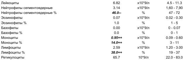 КНИ Опубликовано 6 декабря, 2021 Жалоба Опубликовано 6 декабря, 2021 Вы в поликлинике сдаете анализы или платно ?Мы сдаем платноВ поликлинике запись должен открывать именно онколог. Терапевт общей практики даже не знает о таком анализе.Платно то же пришлось разбираться какой именно анализ нужен.Общий анализ крови расширенный с лейкоцитарной формулой и ретикулоцитамиУ нас % всегда ниже нормыРезультаты с разницей 2 дня Цитата