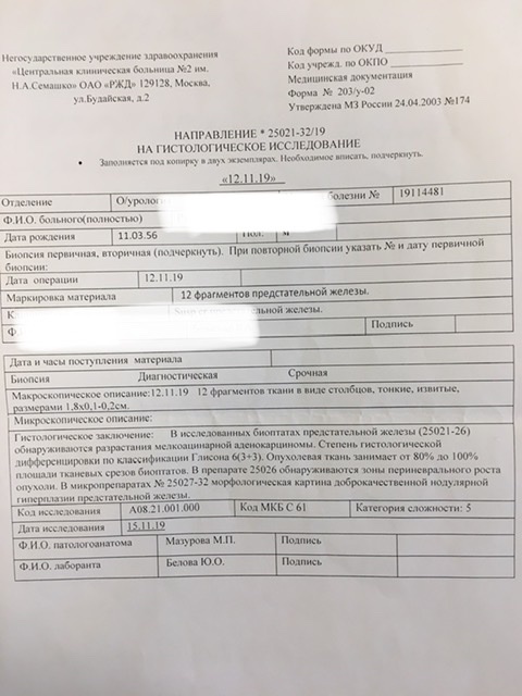 Евгения1402 Опубликовано 23 ноября, 2019 Жалоба Опубликовано 23 ноября, 2019 Витал, здравствуйте. Помогите разобраться как верно действовать- у папы РПЖ папе 63. Порядок был такой: ПСА, УЗИ,МРТ малого таза(с контрастом отказались делать причин не пояснили), Биопсия= диагноз, потом предложение врача, при принятии решения лечится у него, подождать 1,5 месяца сделать малый таз с контрастом т к после биопсии надо ждать, сцинирование костей. При отсутствии метостаз выполнить операцию по удалению простаты, но по его млрвам торопиться не стоит ближе к весне сделаем.Данному врачу не доверяю, не буду мнений здесь высказывать, нетактично. Вчера сделали сцинирование-кости чисты. Есть мысль что вместо мрт с контрастом сделать ПЭТ/КТ и сразу посмотреть все тело? Или в нашем случае оно неактуально.Спасибо огромное. Я крайне боюсь принять неверное решение из-за недостаточной диагностики, может и накручиваю. Цитата