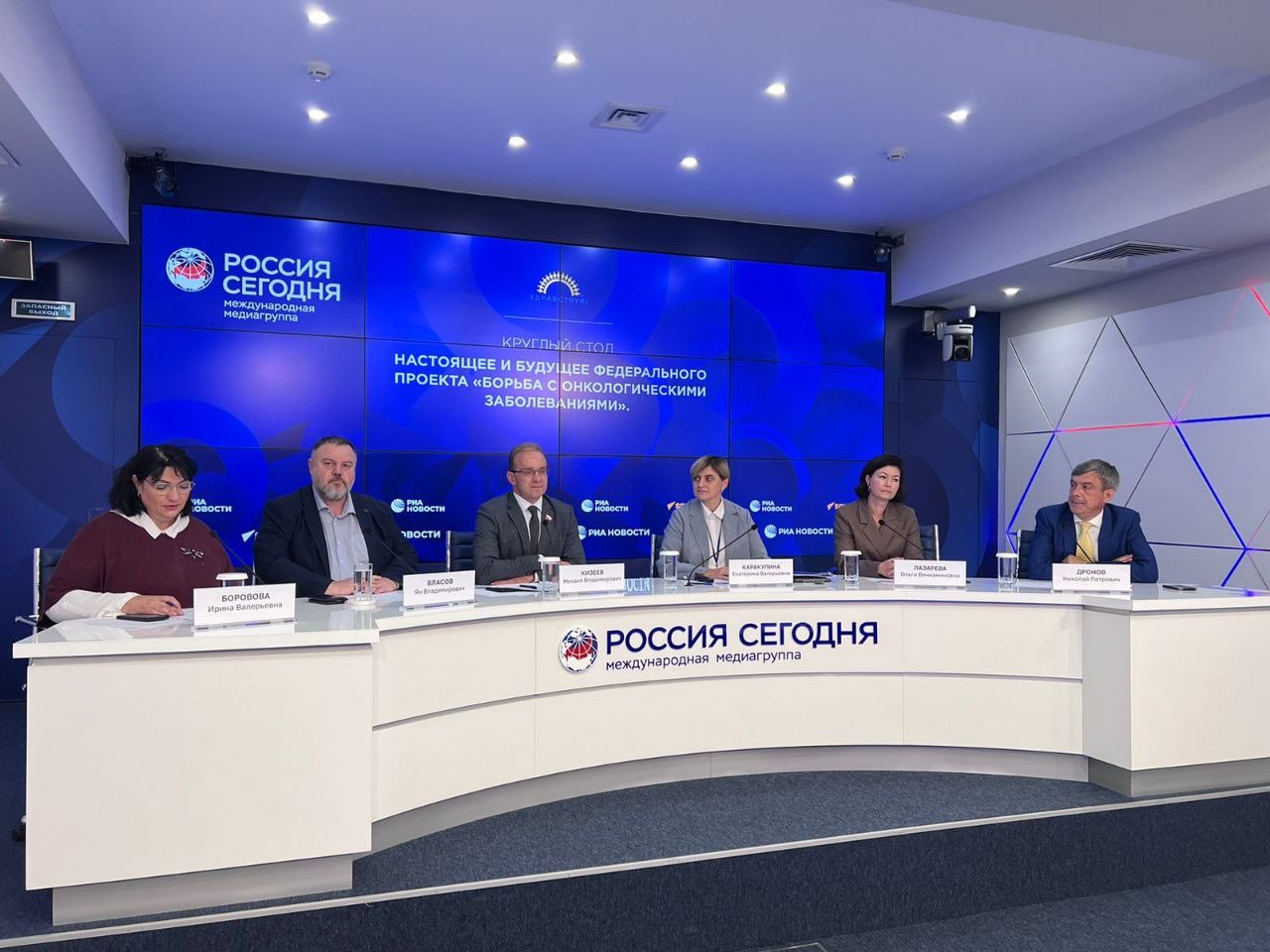 11 сентября в пресс-центре МИА «Россия сегодня» состоялся круглый стол, посвященный результатам реализации круглого стола «Настоящее и будущее Федерального проекта «Борьба с онкологическими заболеваниями». Мероприятие организовано Всероссийской общественной организацией помощи пациентам «Ассоциация онкологических пациентов “Здравствуй!”» при участии представителей Минздрава России, руководителей профильных федеральных центров, а также лидеров общественных и пациентских движений, которые защищают права онкопациентов, в числе которых «Движение против рака».